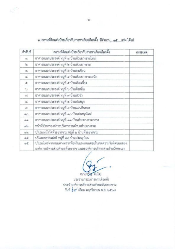 ประกาศผู้อำนวยการเลือกตั้งประจำอบต.ห้วยยางขาม เรื่อง ให้มีการเลือกตั้งสมาชิกสภาและนายกอบต.ห้วยยางขาม