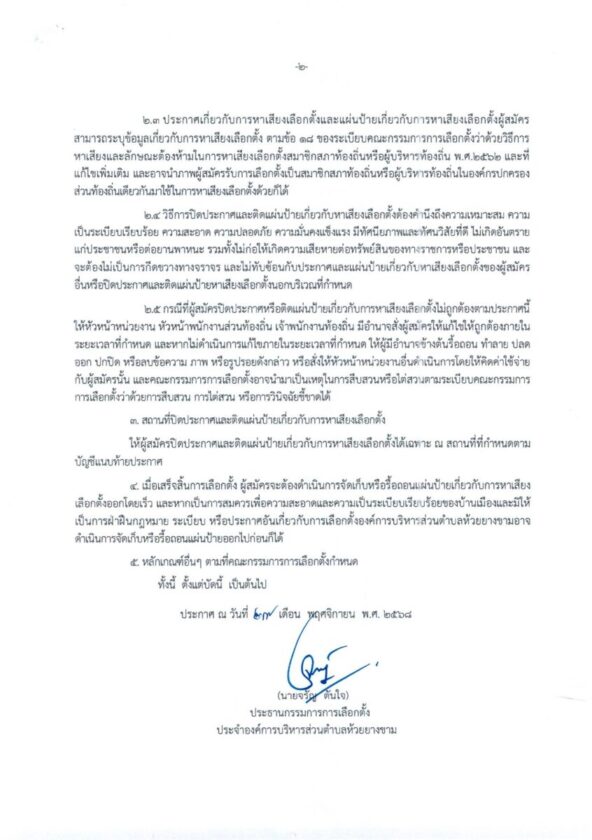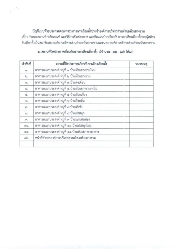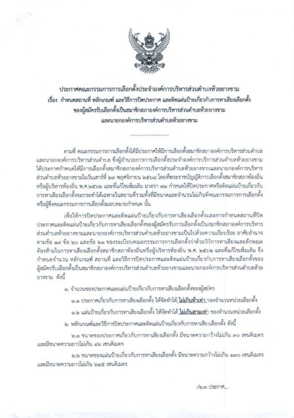 ประกาศผู้อำนวยการเลือกตั้งประจำอบต.ห้วยยางขาม เรื่อง ให้มีการเลือกตั้งสมาชิกสภาและนายกอบต.ห้วยยางขาม