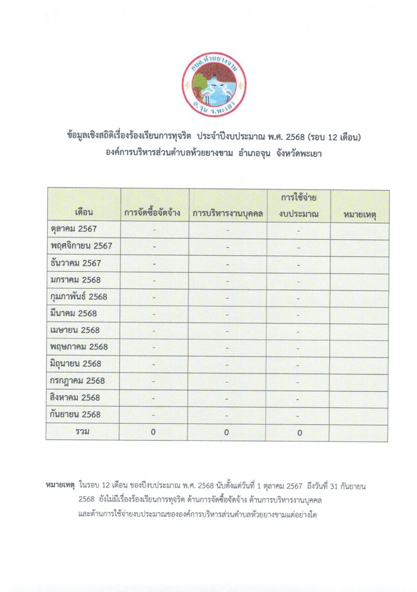 2 ตุลาคม 2568รายงานสถิติเรื่องร้องเรียนการทุจริตและประพฤติมิชอบ ประจำปีงบประมาณ พ.ศ.2568
