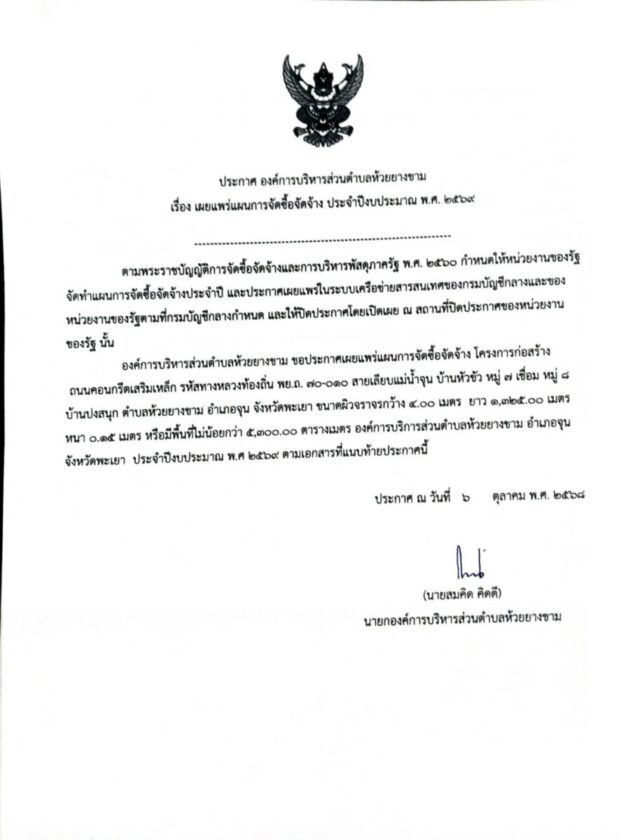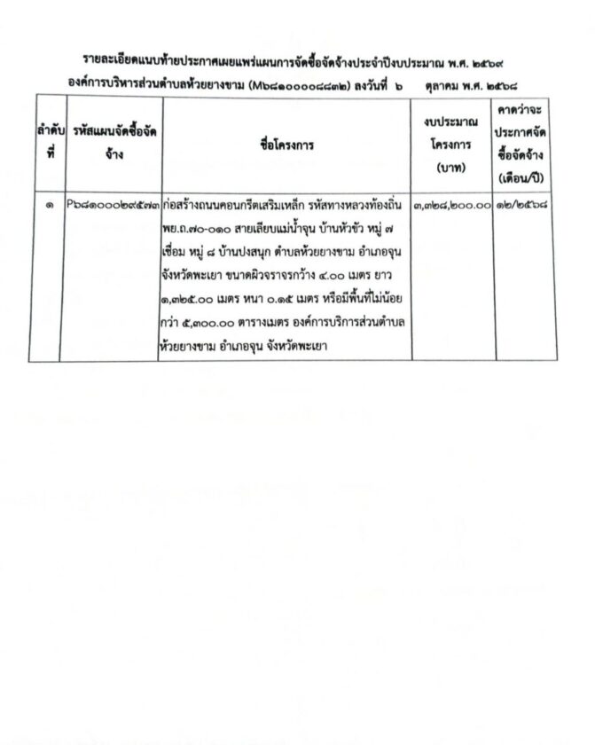 8 ตุลาคม 2568ประกาศอบต.ห้วยยางขาม เรื่อง รายงานผลการจัดเก็บรายได้ ประจำปีงบประมาณ พ.ศ.2568